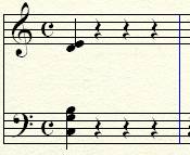 This is C major chord. The bass note is a C, and you can also easily see the E and G. The other two notes are the major 7th and a 9th. Technically, you could label this chord Emin7/C, but CMaj7(9) makes more sense to me. (I will explain what a major 7th is later and how it is different from the more common dominant 7th.)